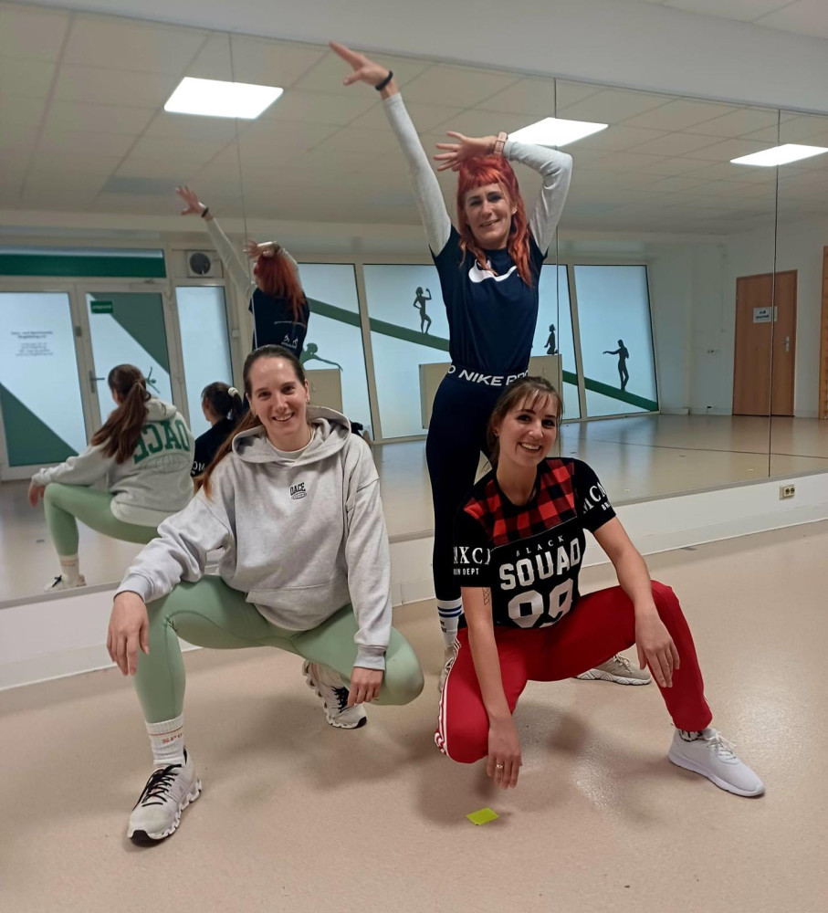 Die Tanzgruppe beim wöchentlichen Training: neue Choreografien werden einstudiert.